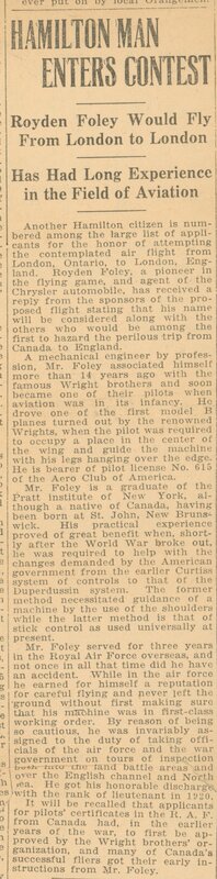Growing up, Foley excelled in his studies. His peers described him as “a young man of sound morals, temperate in speech and action, and worthy of any trust placed in him”. After graduating from St. John High School, Foley acquired his pilot's certificate from the Aero Club of America on November 11, 1911. This was a social club for those with an interest in Aviation. In 1913, Foley applied to Pratt Institute of Technology in Brooklyn, New York, and was accepted into a two-year Mechanical Engineering program in Steam and Machine Design . During his time in New York, Foley developed an interest in early aircraft technology. He travelled to Minneola Field on Long Island, where he began working for the Wright Brothers. There, Foley worked as a part-time mechanic and test pilot. Foley made aviation history in 1913 by becoming the first pilot to fly an aircraft from New York to Philadelphia, a travel distance of 130 kilometres. After graduating from Pratt in 1915, Foley continued working as a flight instructor and test pilot for the Wright Brothers, flying their Model B aircraft. Foley also flew as a pilot for the Sloan Biplane for the Aeromarine Corporation and the Nieuport Monoplane in 1916.