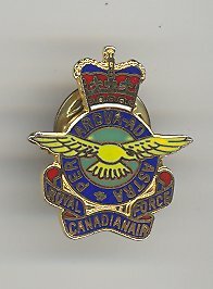 A pin for the Royal Canadian Air Force. Pin has motto Per ardua ad astra and the banner of the R.C.A.F.