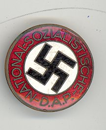 A red, white and black Nazi Party Pin collected by Canadian Signals soldier Grant M. Vansickle. National-Sozialistische D.A.P. Back of pin: RZ M M1/13
