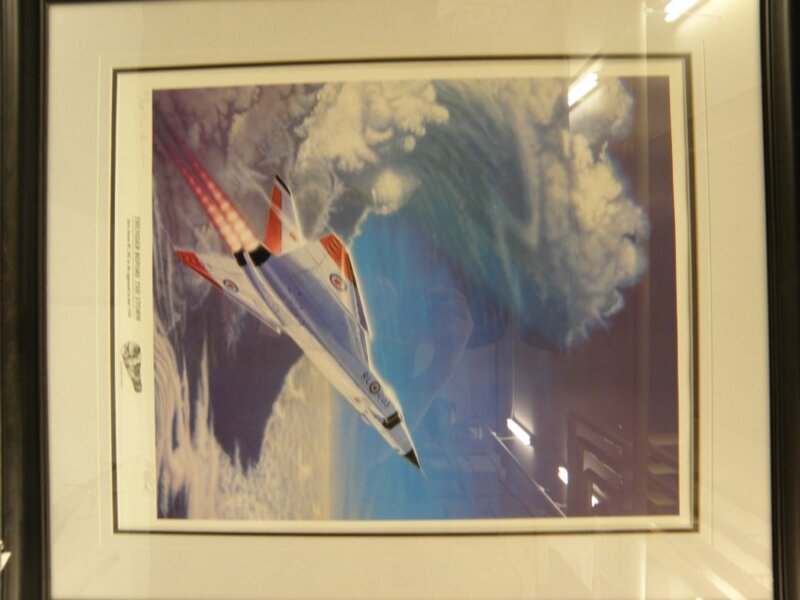 Framed limited edition print (457/500) of the Avro Arrow RL203 in flight by Whitcomb and signed by test pilot Janusz Zurakowski.