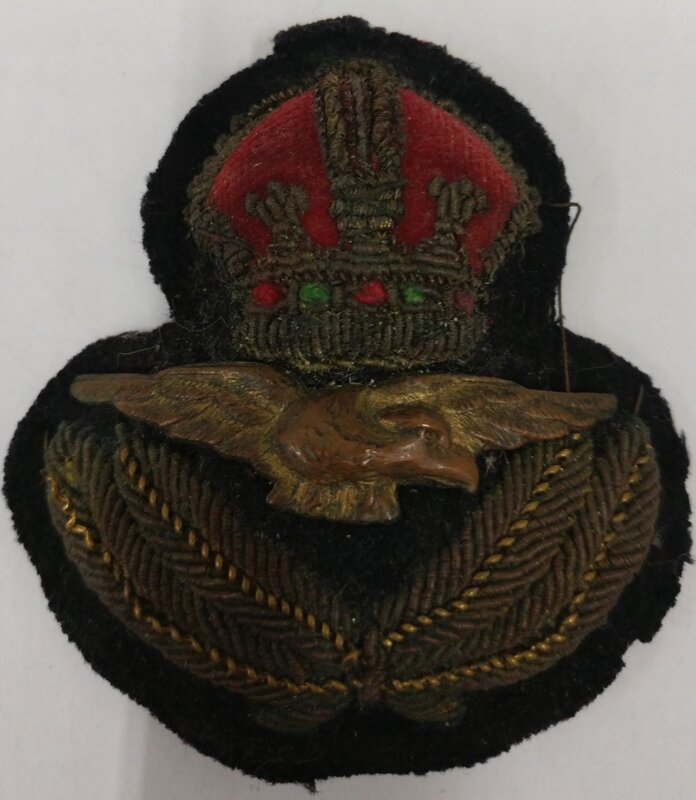 An R.C.A.F. Officer's cap badge which belonged to P/O D. M. McMillan of the R.C.A.F.