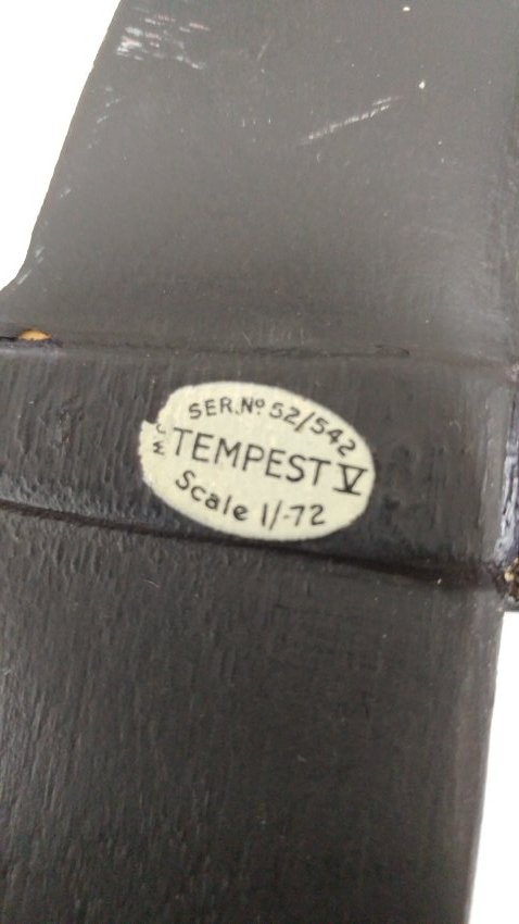 A painted black aircraft ID model of a Tempest V Ser. No. 52/542 Scale 1/-72