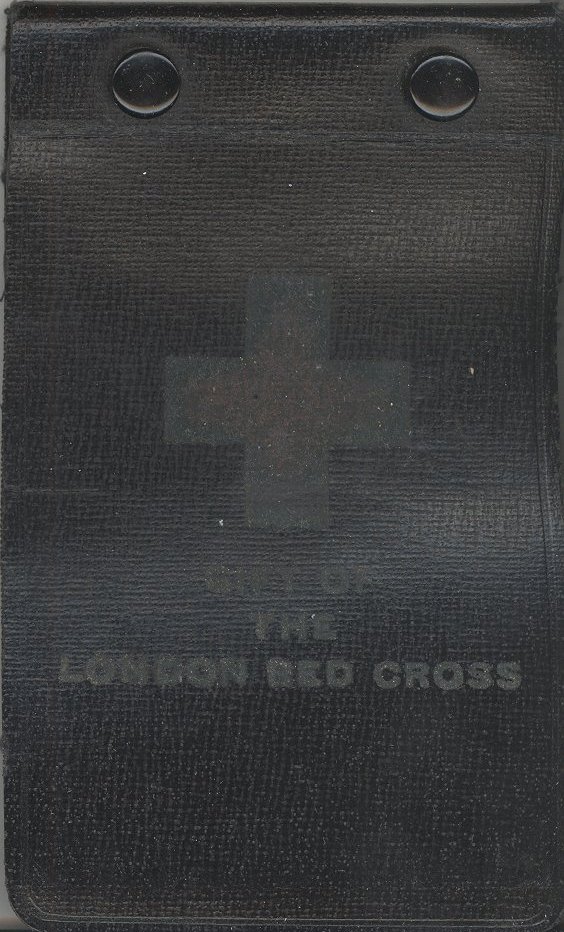A small black leather notebook GIFT OF THE LONDON RED CROSS which belonged to James Stewart McLaren of the R.C.A.F.