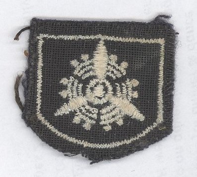 An Engineer Mechanic Trade Badge displaying a propeller in white thread over a black felt background.