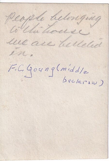 Photograph of a French family of three and two RAF airmen. Frederick Carson Young centre back row.