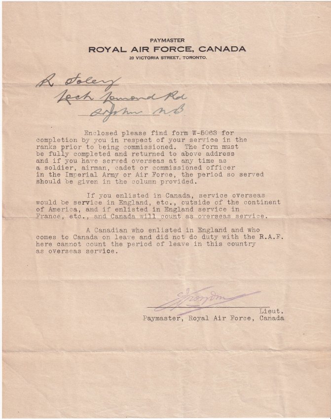 PAYMASTER ROYAL AIR FORCE, CANADA 20 VICTORIA STREET, TORONTO