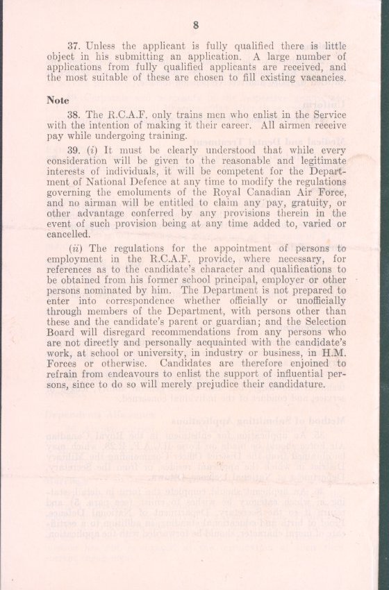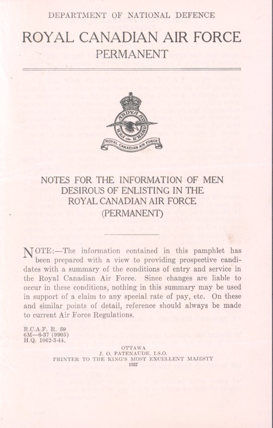 Notes for the Enlistment of Men Desirious of Enlisting in the Royal Canadian Air Force (Permanent)