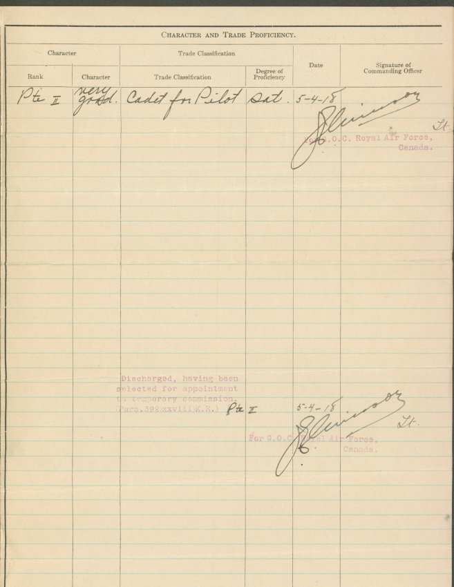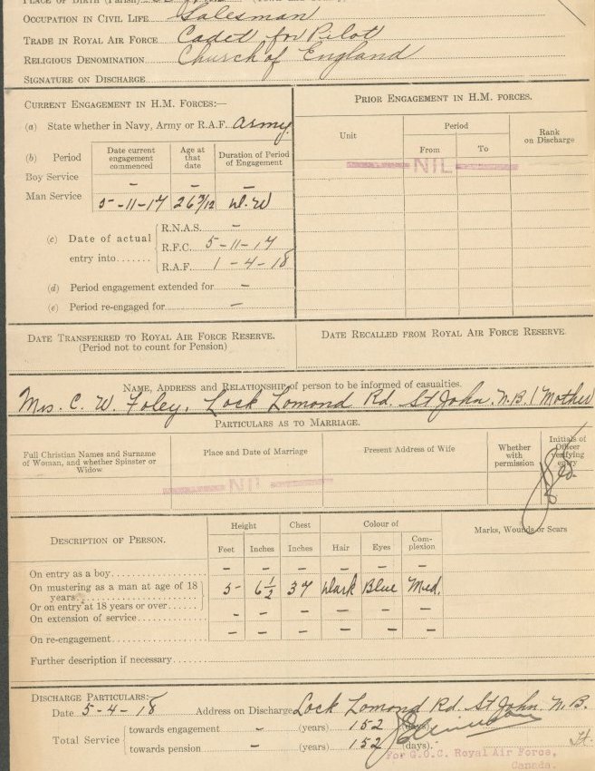 Royal Air Force: Certificate of the service of Royden Foley