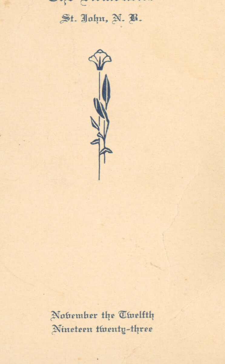 This is a small little ticket looking sheet of paper that states "Military Ball" The Armouries in Saint John New Brunswick. Stating November thr 12th 1923. The back states the porgramme of dance for the night in the order, fox trot, waltz, fox trot, fox trot- with penciled writing beside stating something about this dance having meaning I suppose. Then we have fox trot, waltz, fox trot, fox trot, fox trot. Then it lists the extra dances for the night, fox trot, fox trot, waltz, then three more fox trots.
